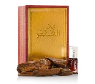 • عود معبأ الفاخر المميز برائحته الفاخرة الثقيلة، و التي تحتوي على عود الخشب الطبيعي بوزن 50 جم و ربع تولة دهن عود كمبودي فاخر